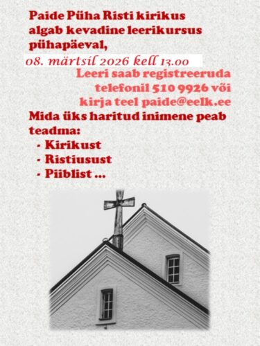 Muul ajal kokkuleppel telefonil 510 9926 või paide@eelk.ee